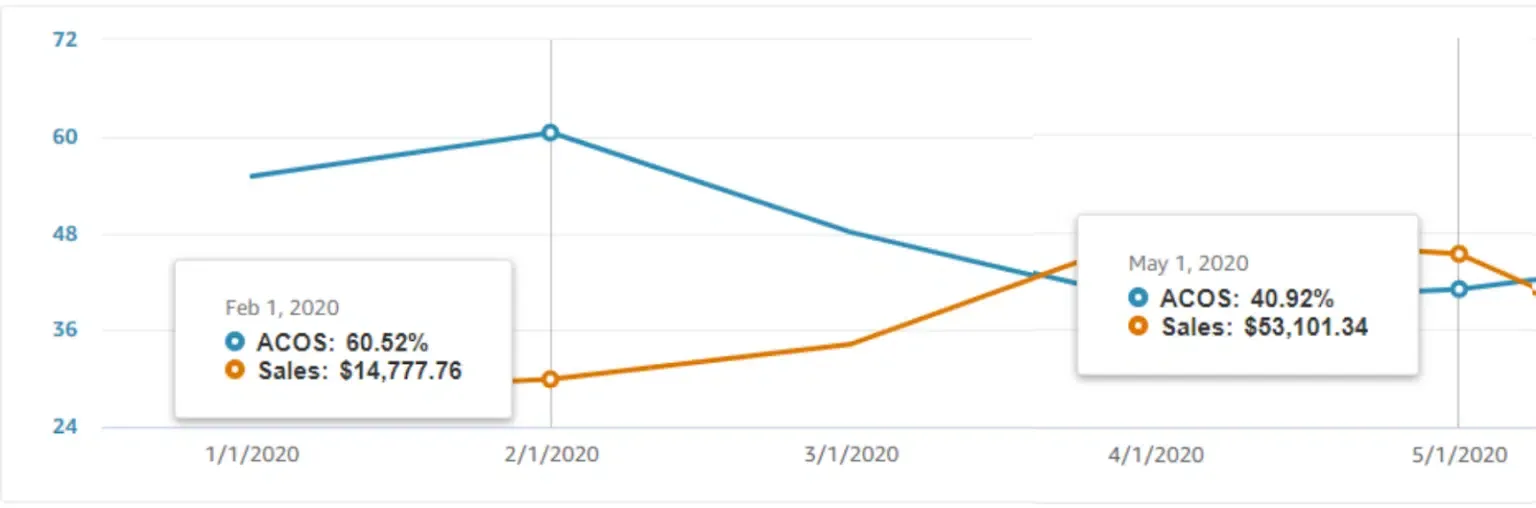 Voordat advertentie-experts met Updraft Ventures gingen samenwerken, bedroeg de omzet $ 14.000, met een gemiddelde ACoS van 60,52%. Drie maanden later was de advertentieomzet gestegen tot $ 53.101,34, met een gemiddelde ACoS van 40,92%. Binnen deze korte periode hebben we de totale omzet met 208% verhoogd en de winstgevendheid met 20% verbeterd. Onze nauwgezette aandacht voor de campagnes is uiterst effectief gebleken voor Updraft Ventures. Op korte termijn steeg hun advertentieomzet en daalde de ACoS automatisch. Op lange termijn blijft de omzet echter stijgen en de ACoS dalen, en elke maand zien we verbetering.